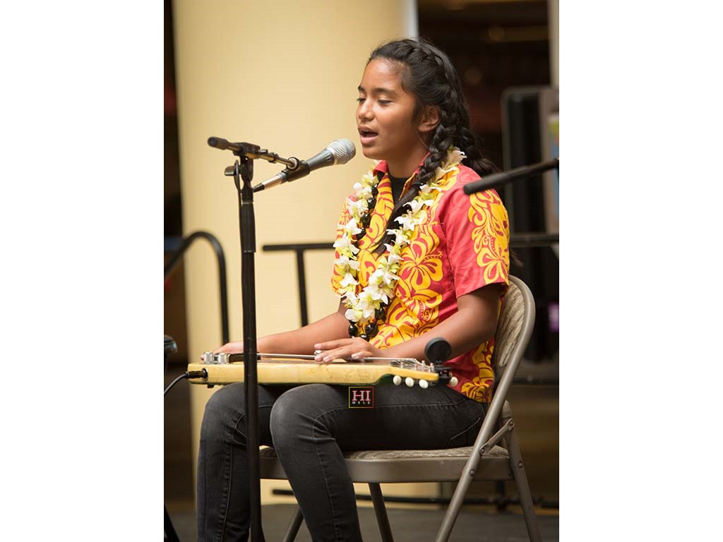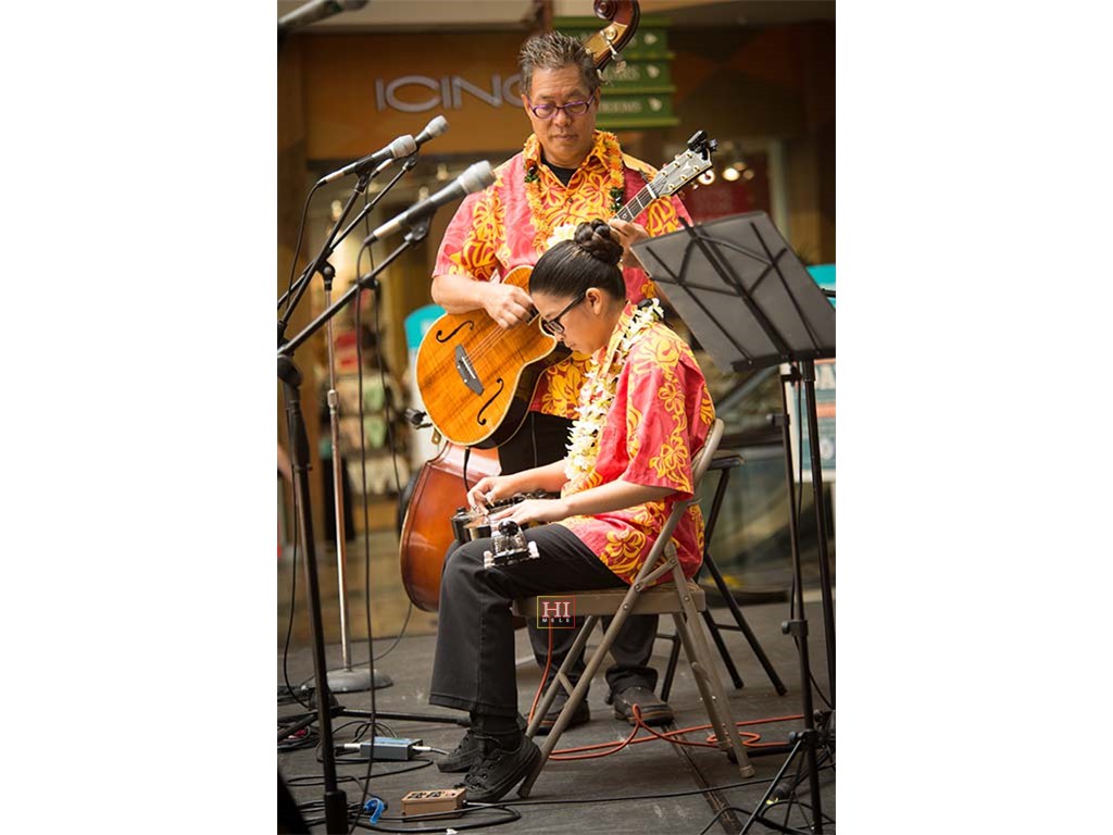 Alexis Tolentino with Alan Akaka on guitar and dad Ronald Tolentino on U-bass.