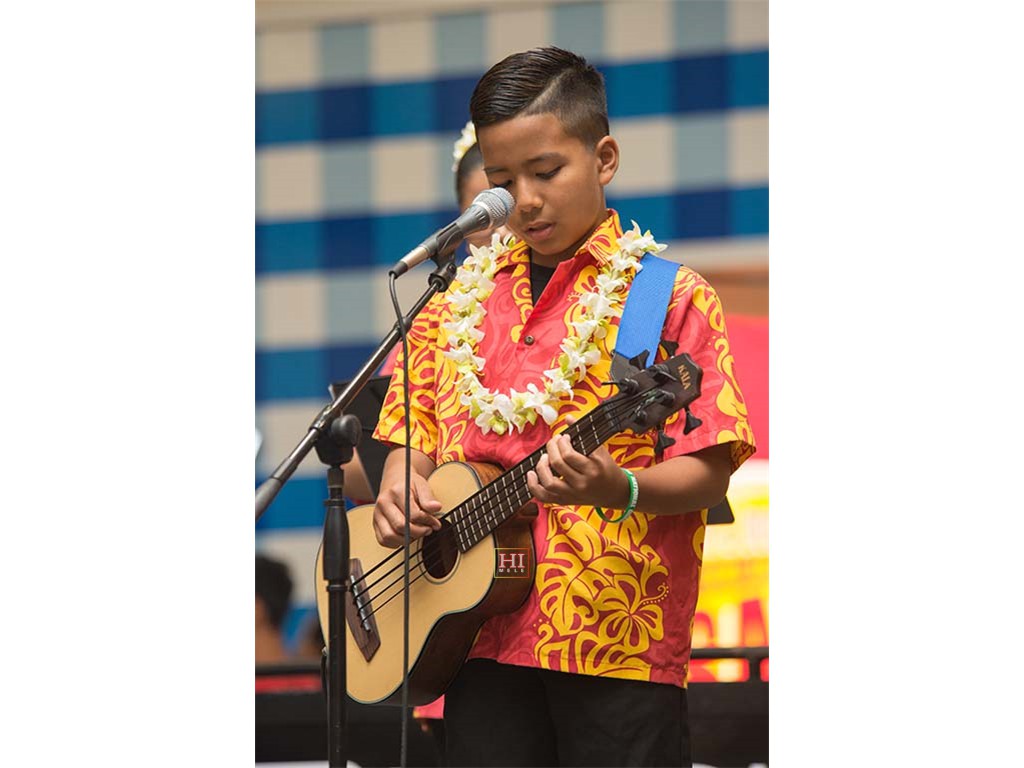 Ke Kula Mele Hawaii students Tai Misailidis on U-bass with Alexis Tolentino playing 'ukulele.