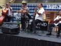 Next Generation steel guitarist Pono Fernandez with Addison Ching, Alan Akaka, and Larry Holu. Photo by Gale Warshawsky.