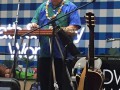 Featured steel guitarist Isaac Akuna with Adam Asing, Kaipo Asing, and Wayne Shishido. Photo by Gale Warshawsky.