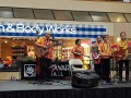 Featured steel guitarist Paul Kim with Adam Asing on bass, Kaipo Asing on guitar, and Bobby Ingano on 'ukulele. Photo by Gale Warshawsky.