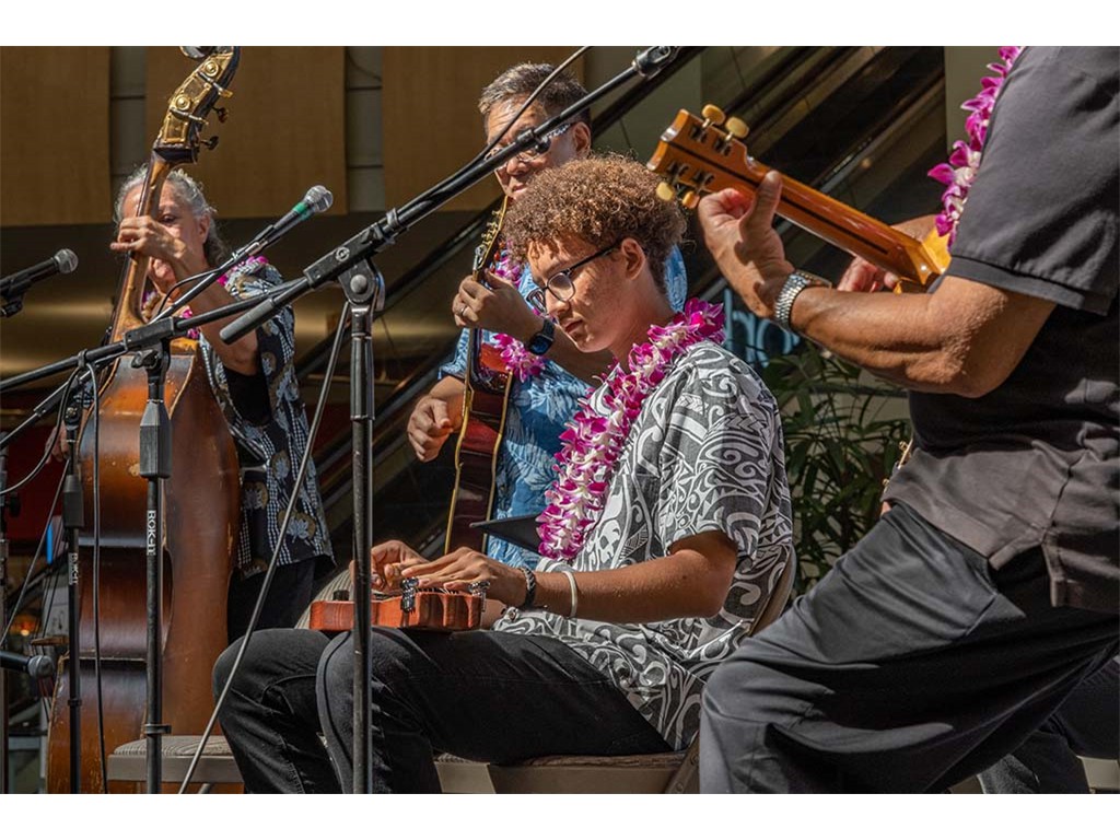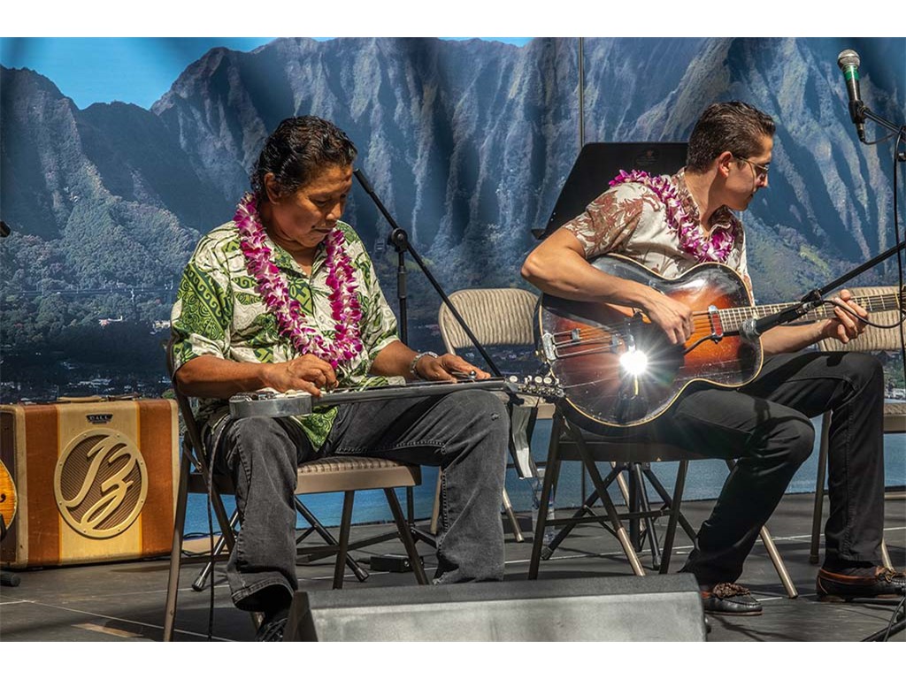 The festival featured steel guitar masters Gerg Sardinha and Po‘okela, Kapono Lopes, Jeff Au Hoy, Steve Cheney, Joseph Zayac, Bobby Ingano, and Alan Akaka with NextGen steel guitar players from Ke Kula Mele Hawai‘i School of Hawaiian Music.