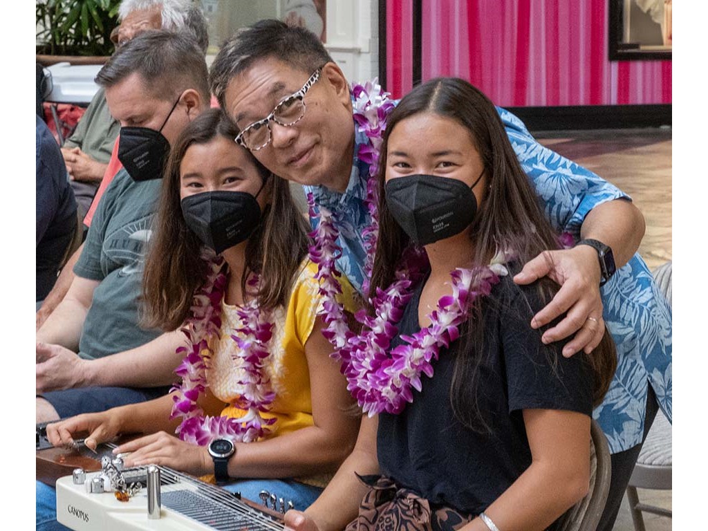 Alan Akaka with John, Tai, and Joey Misailidis in the audience.