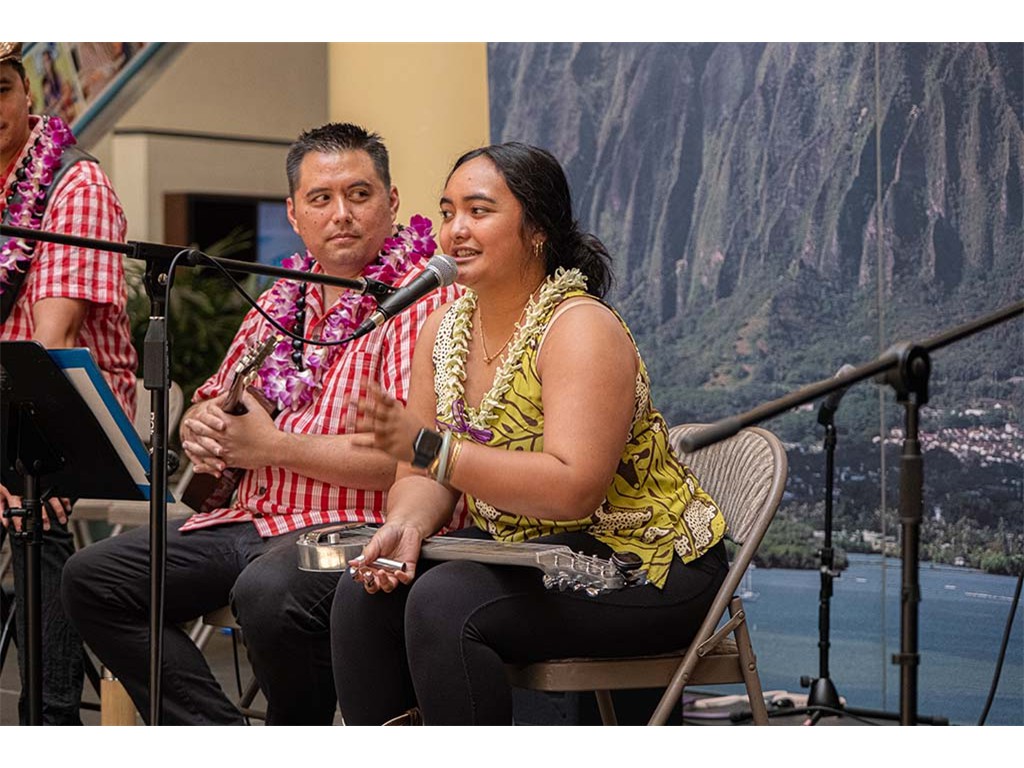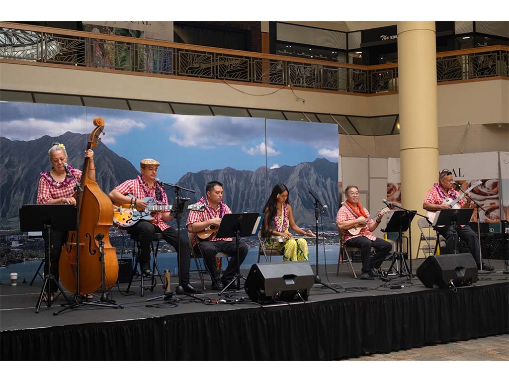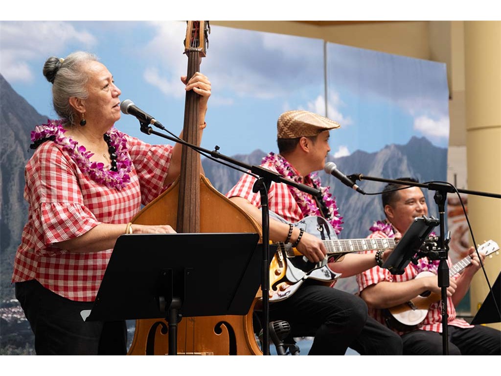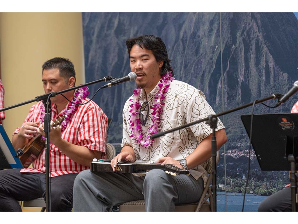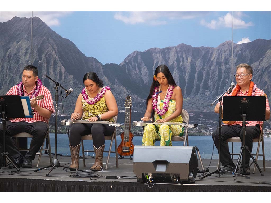 Musicians Calvin Higa, Claude Kutaka, Tom Okimoto, Augie Erlandiz, Miles Yoshioka, Clayton Izu, Mele Alaka’i Naomi Ahana, Steve Kawachi, Myra O’Brien, and Yvonne Bangay.