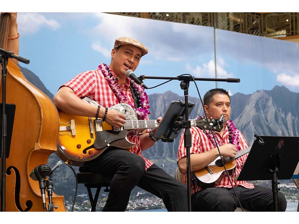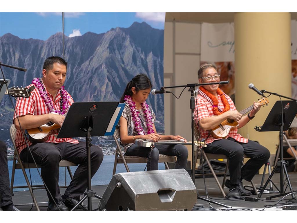 Featured steel guitarist Devin Nakahara with Kaipo Lindsey and Alan Akaka.