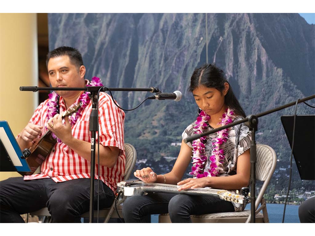 Steel guitar duet by Makamae and Isabella with Kaipo Lindsey and Alan Akaka.