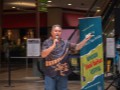 Claude Kutaka observing another festival guest on the steel guitar.