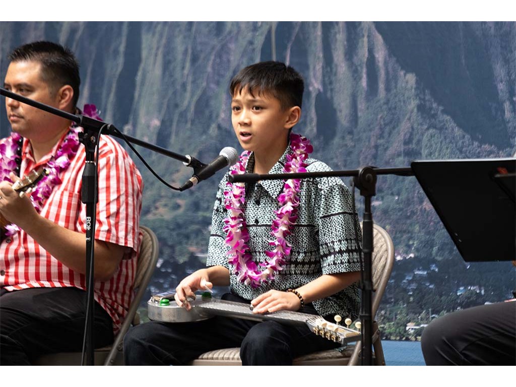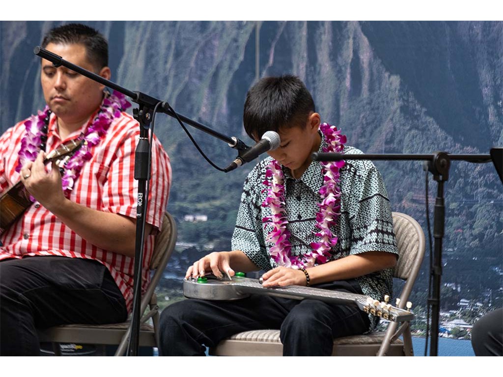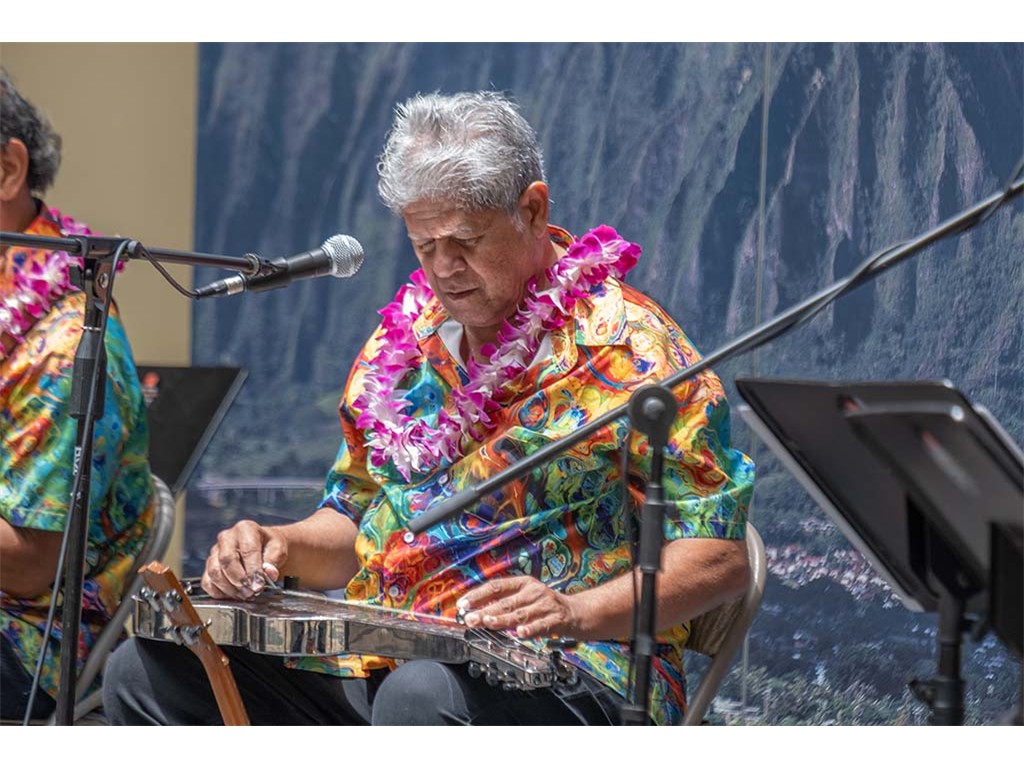 Claude Kutaka provided hands-on opportunities for festival guests to learn more abouit the Hawaiian steel guitar.