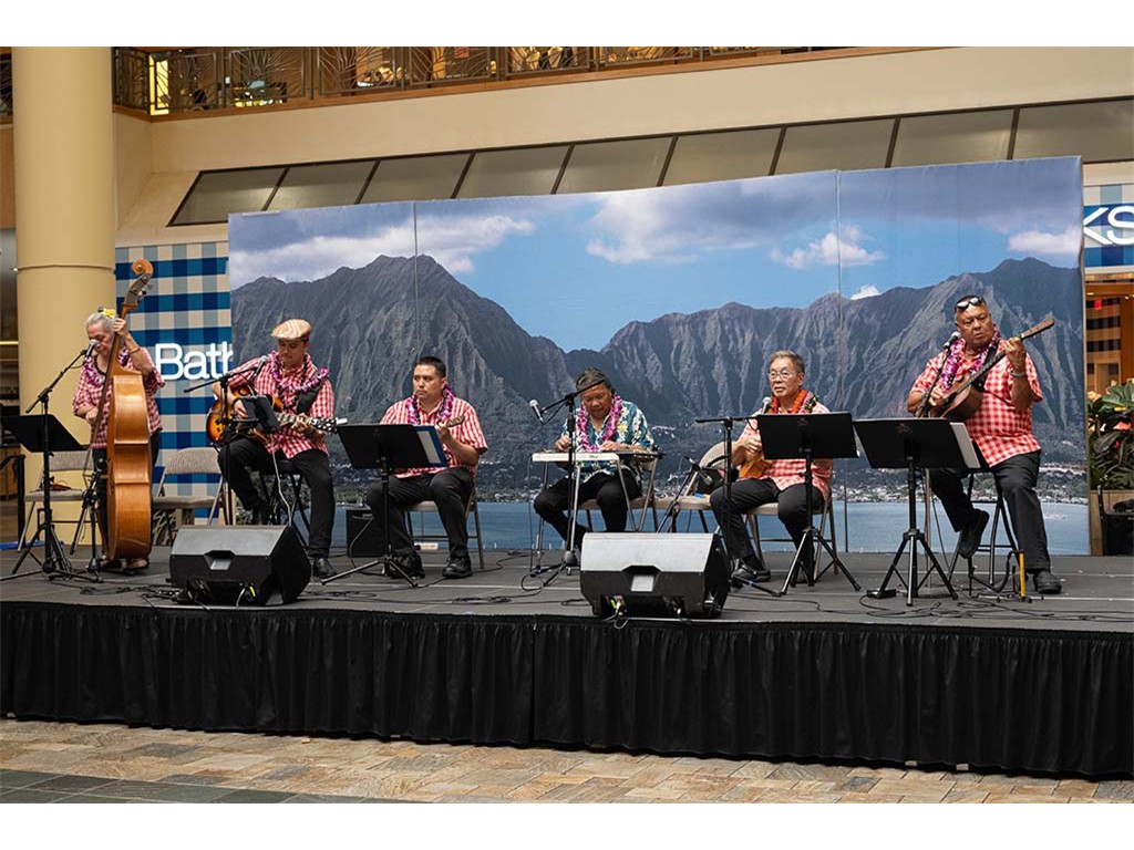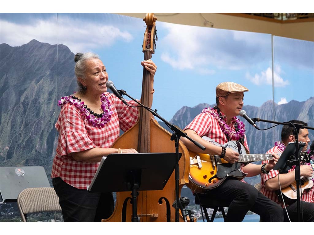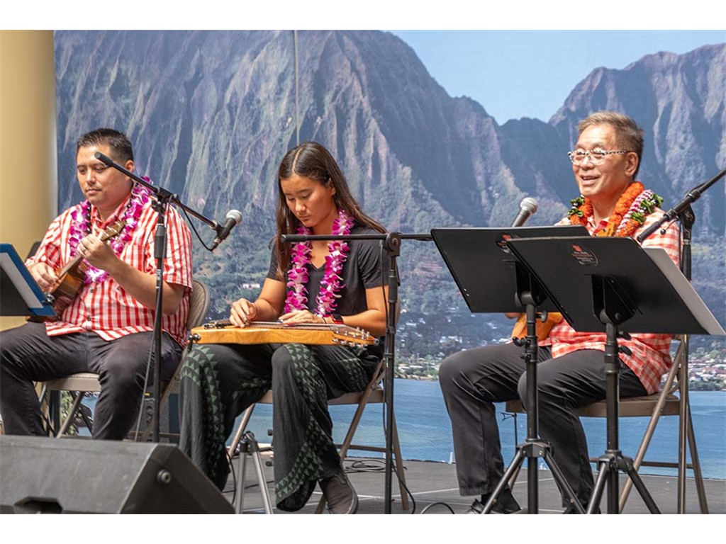 Featured steel guitarist Mālie Lyman with Kaipo Lindsey and Kaipo Asing. Darrell Aquino is also in the picture.