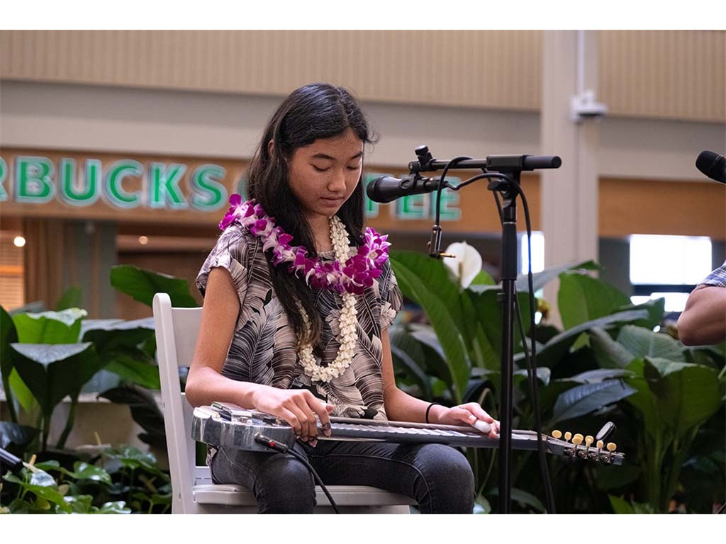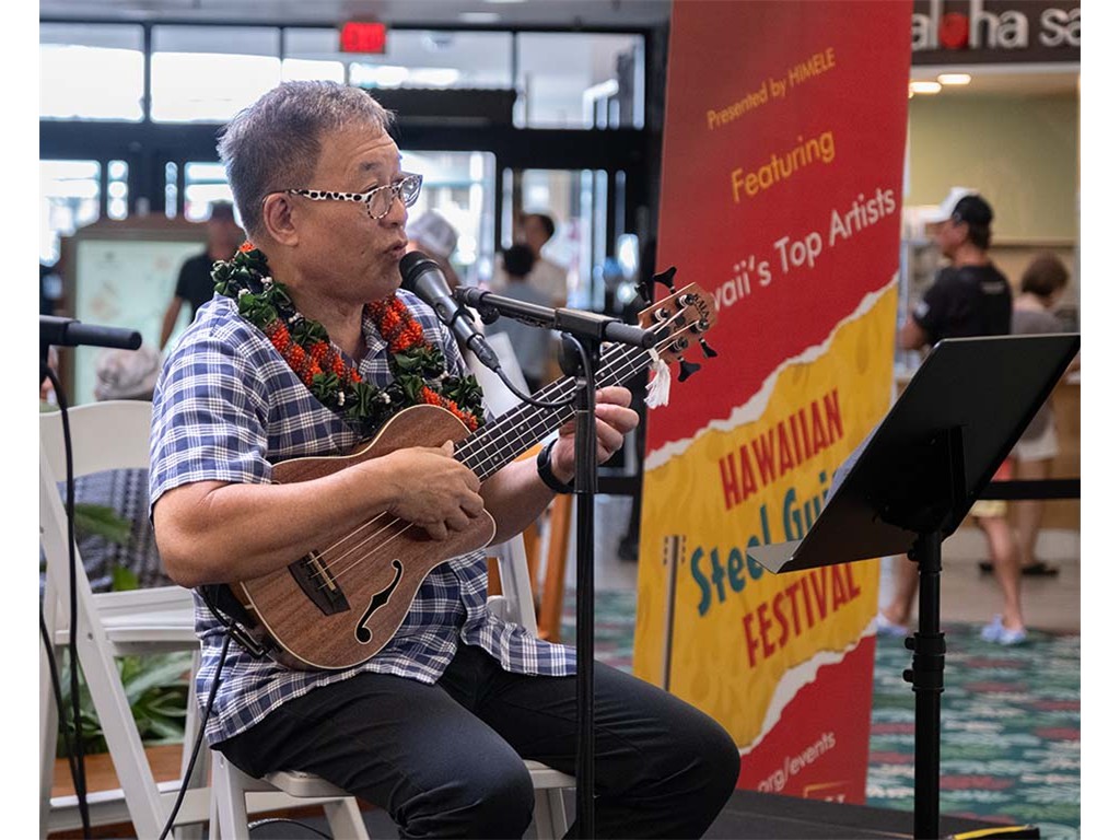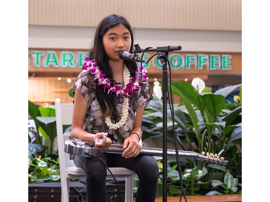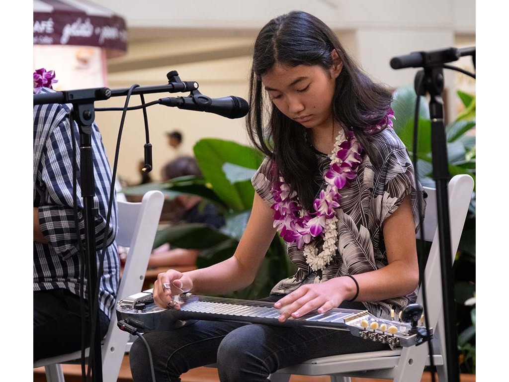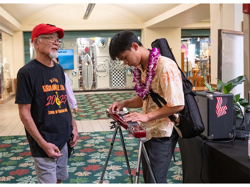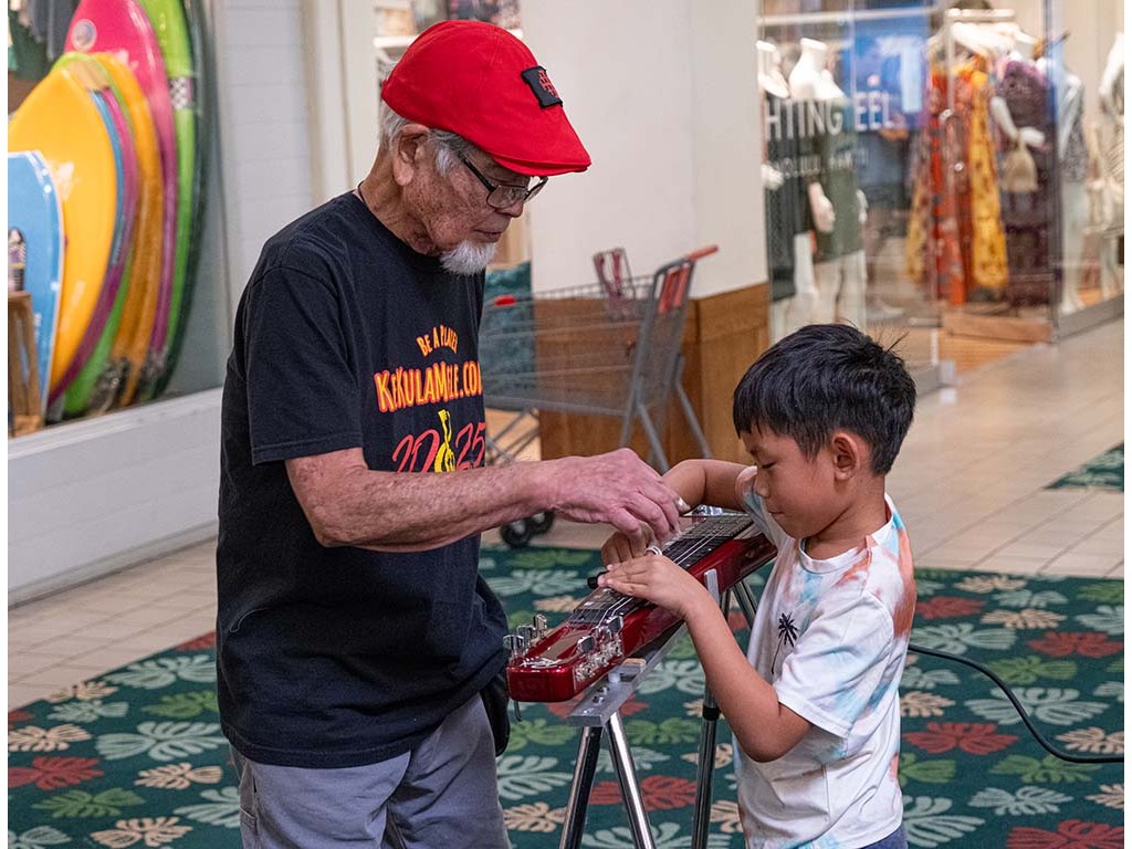The 2025 Hawaiian Steel Guitar Festival - Keiki Kine at Kahala Mall featured NextGEN steel guitar players from Alan Akaka's Ke Kula Mele Hawai‘i School of Hawaiian Music in a two-hour performance. NextGEN steel guitarists Thang Nguyen Hi‘ipoi Lindsay, Isaac Woodward, Ever Ta‘ala, and Isabella Bertelmann were accompanied by Alan Akaka and Ke Kula Mele parents David Woodward and Kaipo Lindsey. Steel Guitarist Bobby Ingano made a special guest appearance at the festival. Emcee was Jake Kuliaikanu‘u Fernandez.