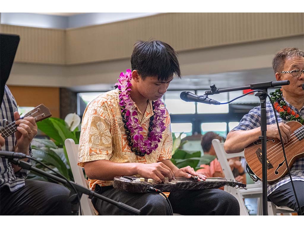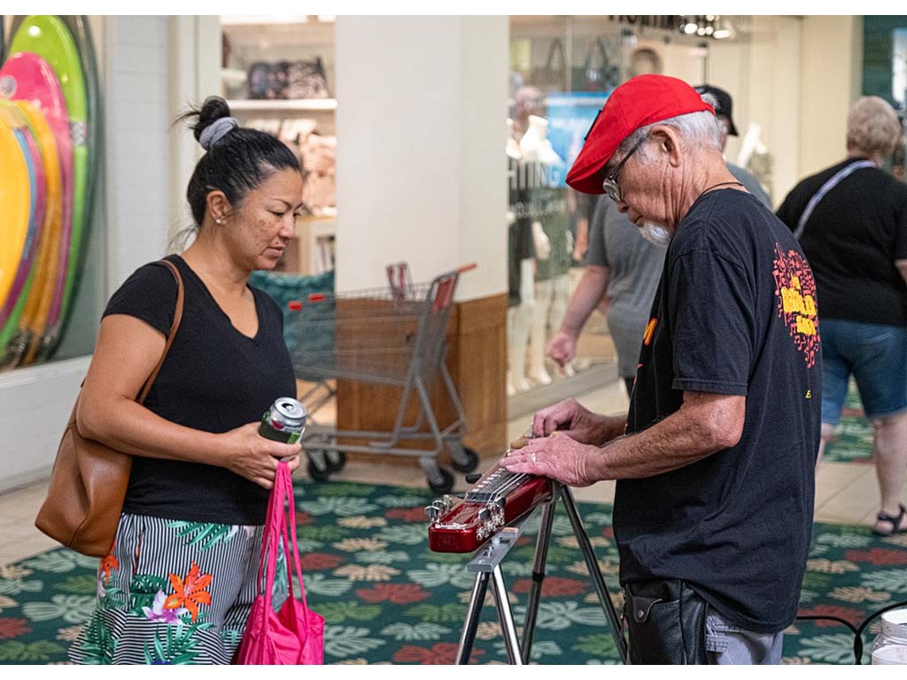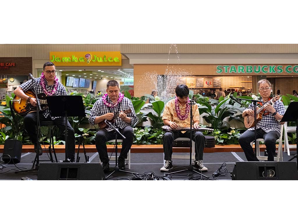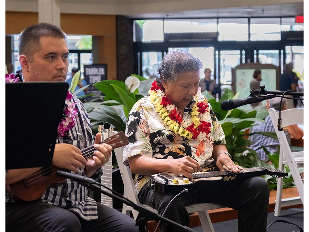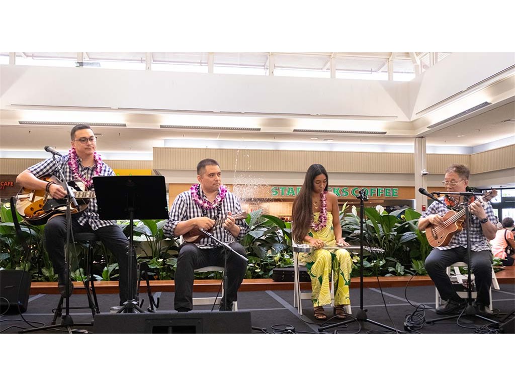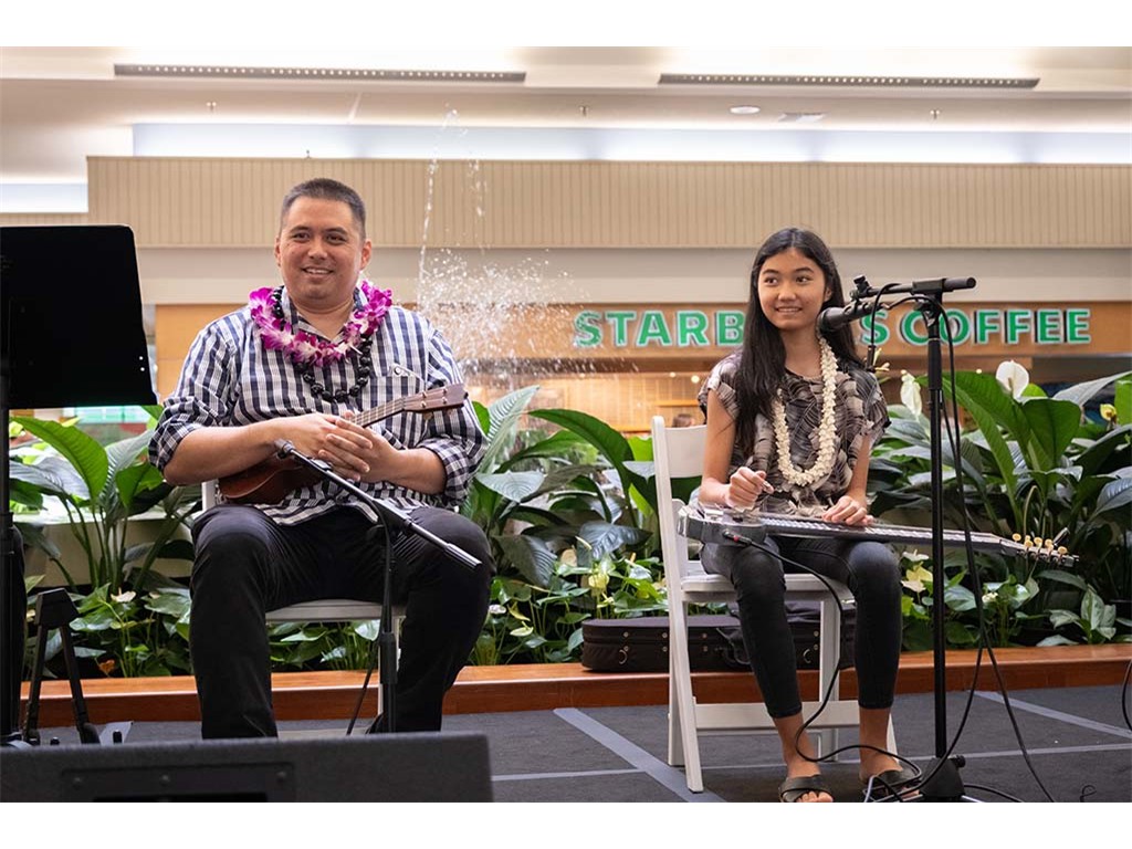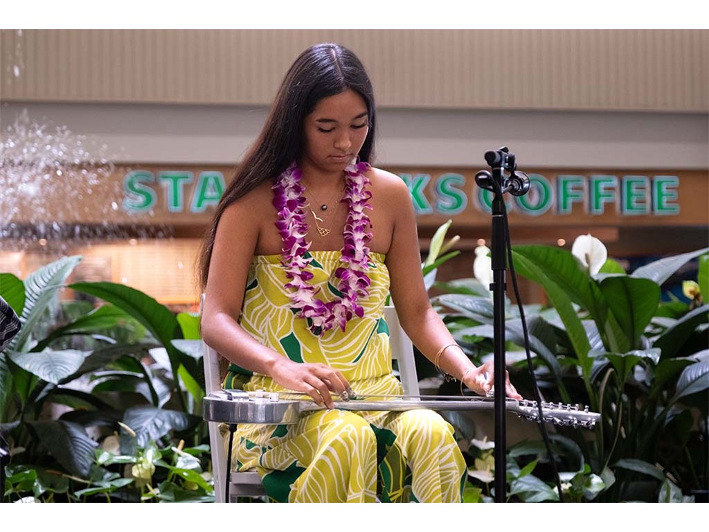 The 2025 Hawaiian Steel Guitar Festival - Keiki Kine at Kahala Mall featured NextGEN steel guitar players from Alan Akaka's Ke Kula Mele Hawai‘i School of Hawaiian Music in a two-hour performance. NextGEN steel guitarists Thang Nguyen Hi‘ipoi Lindsay, Isaac Woodward, Ever Ta‘ala, and Isabella Bertelmann were accompanied by Alan Akaka and Ke Kula Mele parents David Woodward and Kaipo Lindsey. Steel Guitarist Bobby Ingano made a special guest appearance at the festival. Emcee was Jake Kuliaikanu‘u Fernandez.