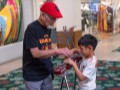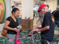Claude Kutaka observes Thang Nguyen at the Hands-on Opportunities station.