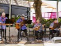 NextGen steel guitarist Thang Nguyen with David Woodward and Kaipo Lindsey. Alan Akaka, Steve Kawachi, and Ethan Speyer are in the background.,