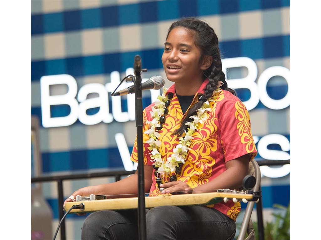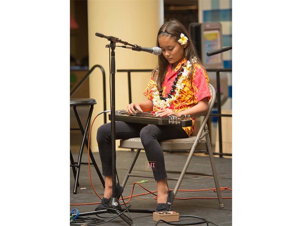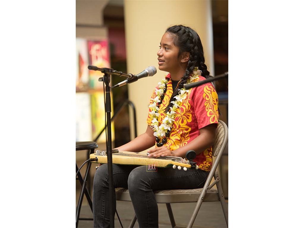 Alexis Tolentino with Alan Akaka on guitar and dad Ronald Tolentino on U-bass.