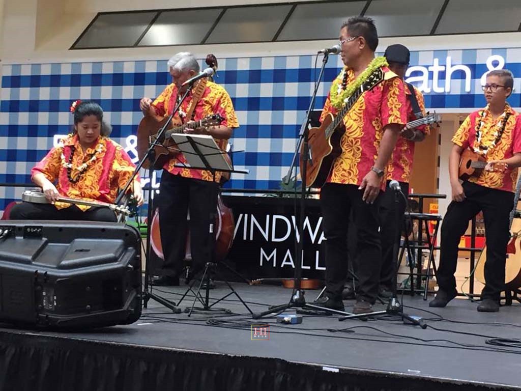 Pono with the Ke Kula Mele Ensemble players: Addison, Alexis, Larry and Alan. Photo by Sharon Ching.