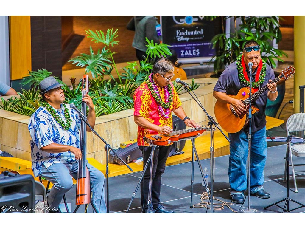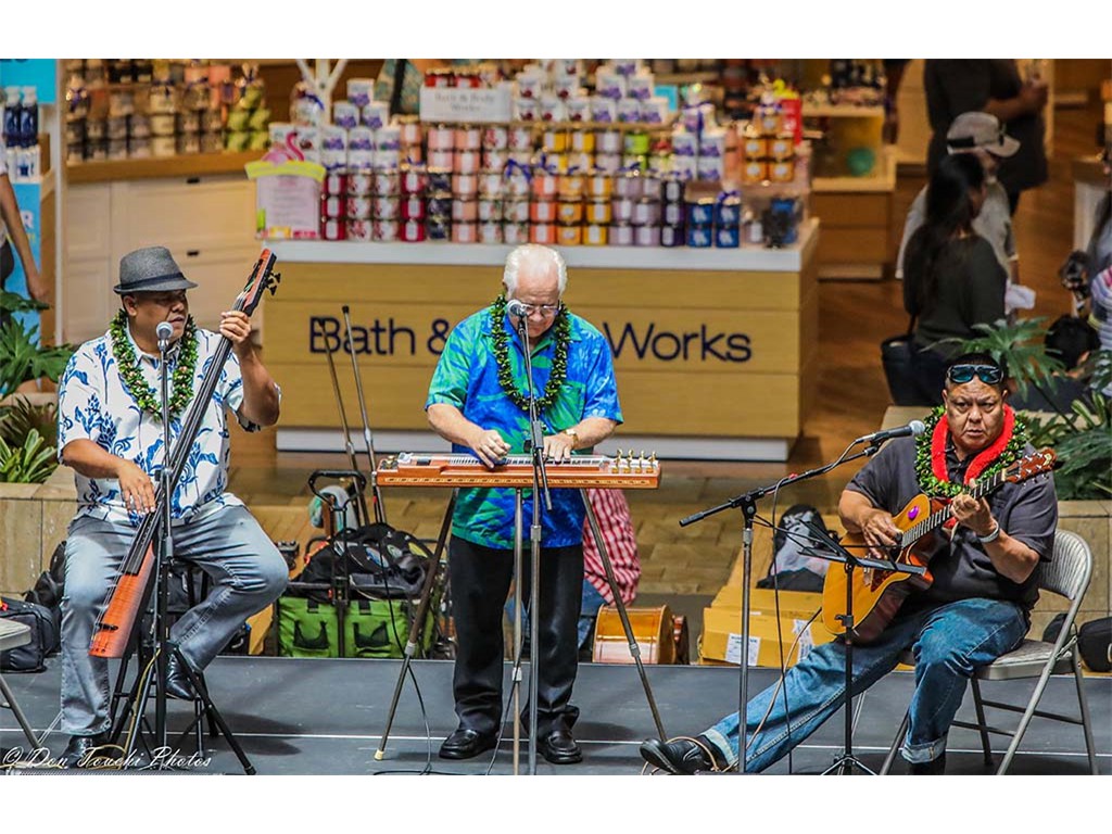 Featured steel guitarist Steve Cheney with Adam Asing and Kaipo Asing.