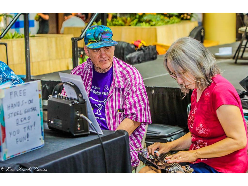 The festival featured steel guitar hands-on demonstrations provided by volunteers and NextGen steel guitar players from Alan Akaka's Ke Kula Mele Hawai‘i School of Hawaiian Music. Festival guests were invited to learn about the Hawaiian steel guitar and play the steel guitar under the guidance of the demonstration assistants.