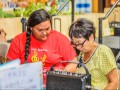 • Heuʻi Bandmann watches as a festival guest tries her luck on the steel guitar.
