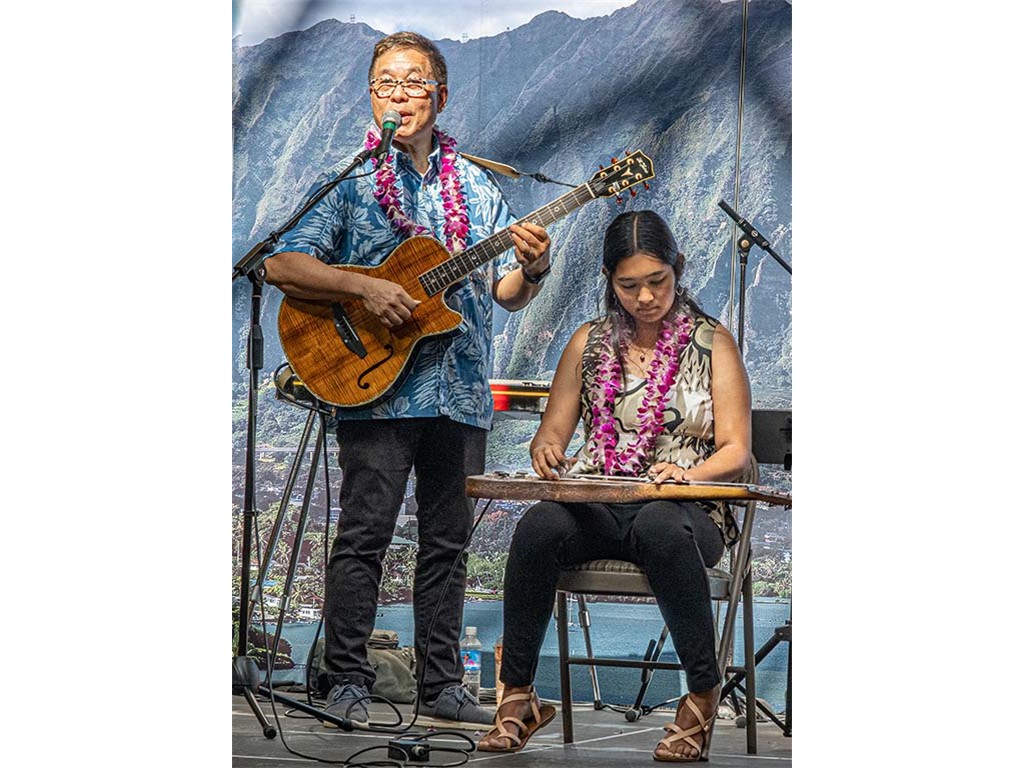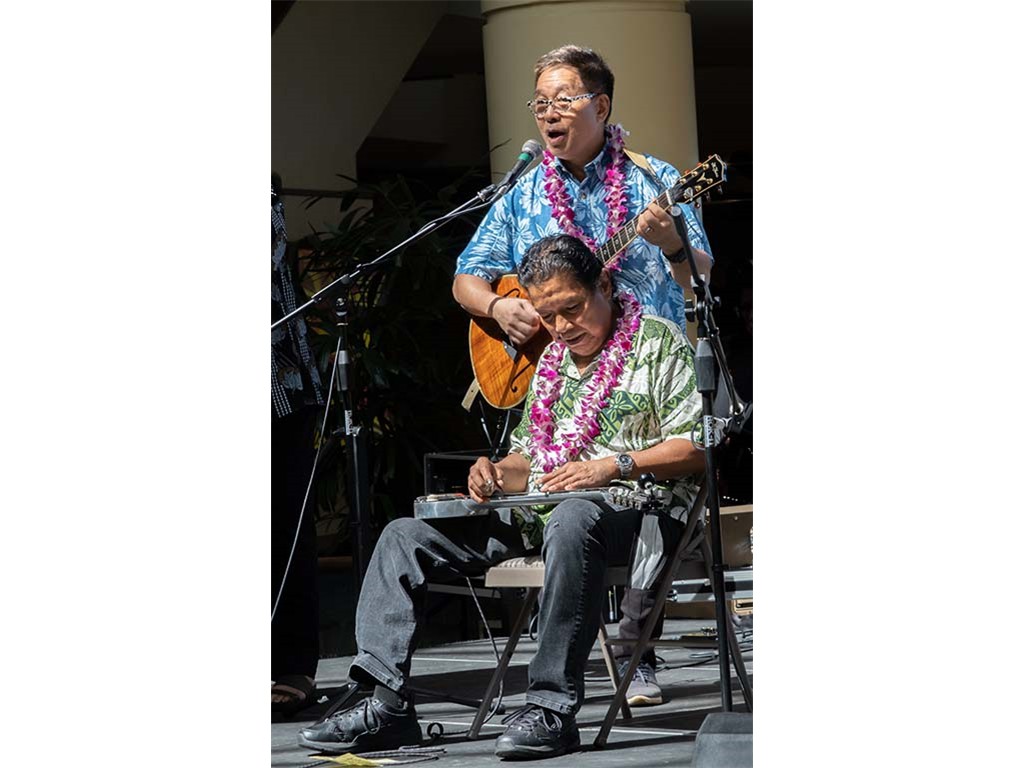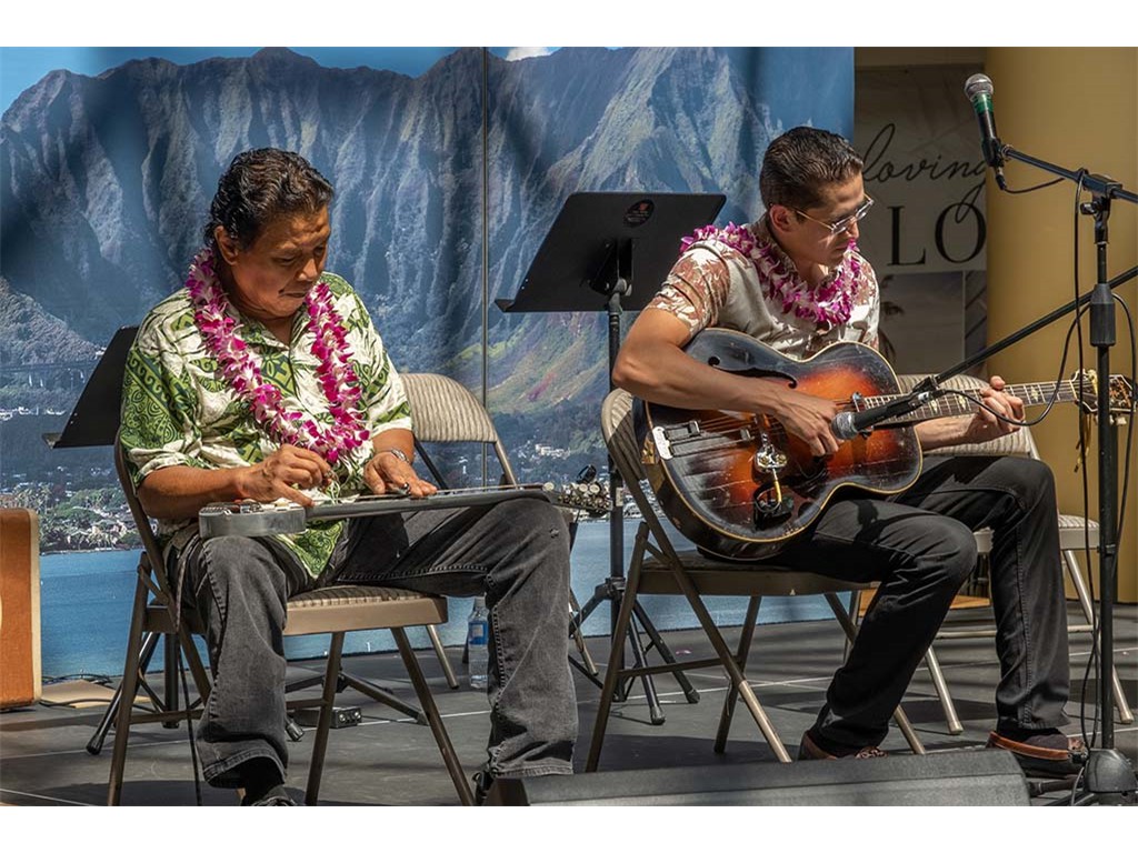 The festival featured steel guitar masters Gerg Sardinha and Po‘okela, Kapono Lopes, Jeff Au Hoy, Steve Cheney, Joseph Zayac, Bobby Ingano, and Alan Akaka with NextGen steel guitar players from Ke Kula Mele Hawai‘i School of Hawaiian Music.
