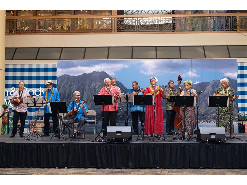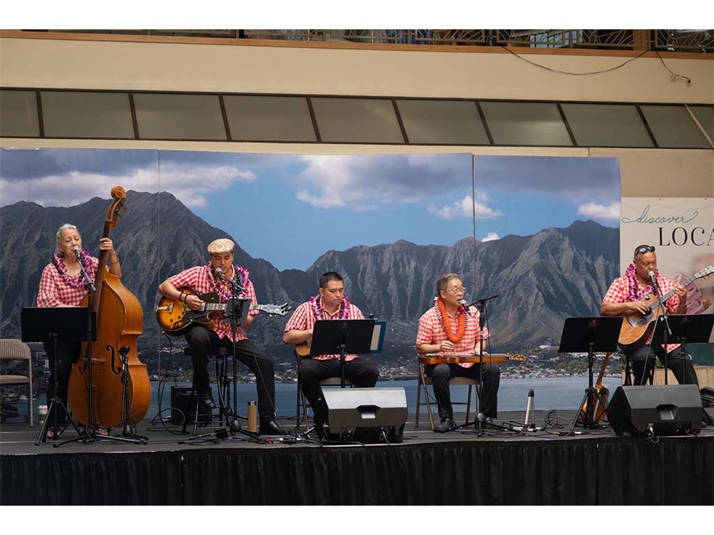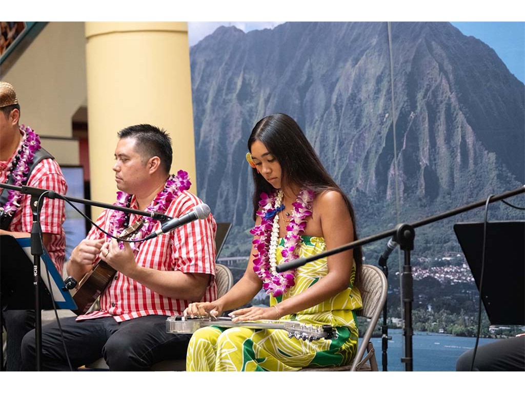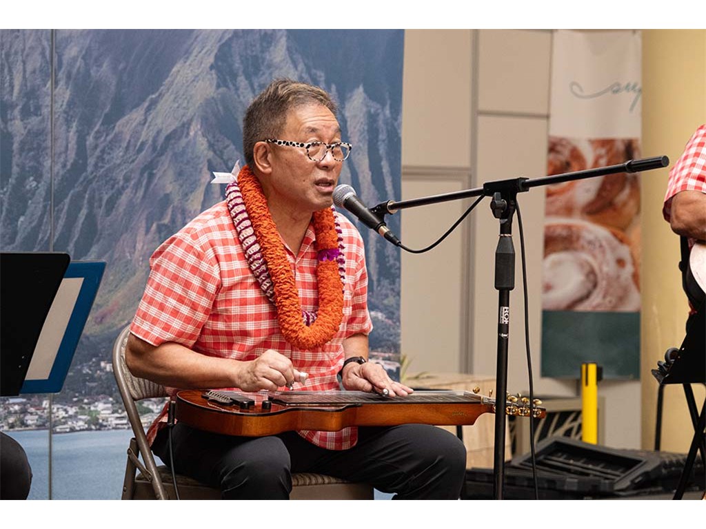 Musicians Calvin Higa, Claude Kutaka, Tom Okimoto, Augie Erlandiz, Miles Yoshioka, Clayton Izu, Mele Alaka’i Naomi Ahana, Steve Kawachi, Myra O’Brien, and Yvonne Bangay.