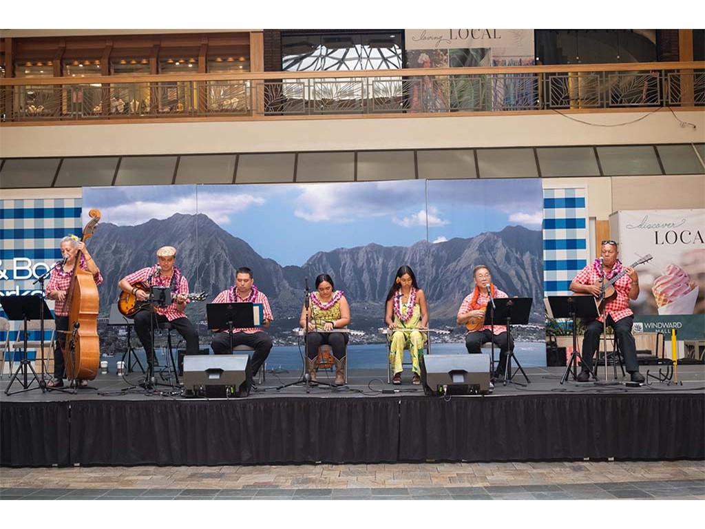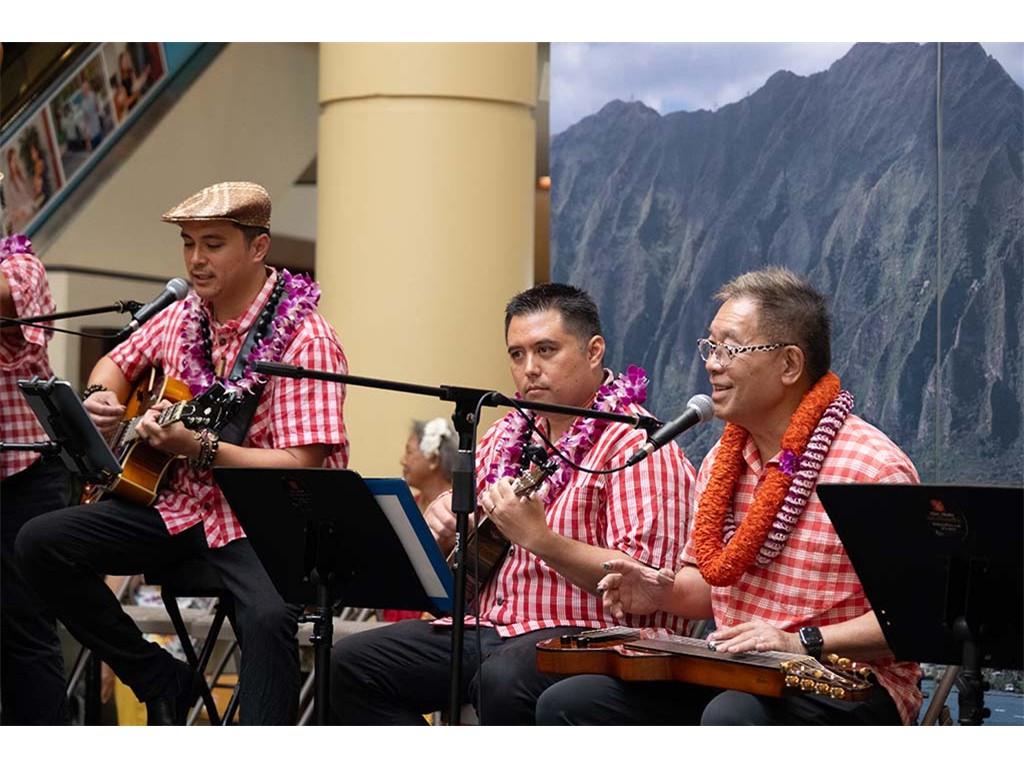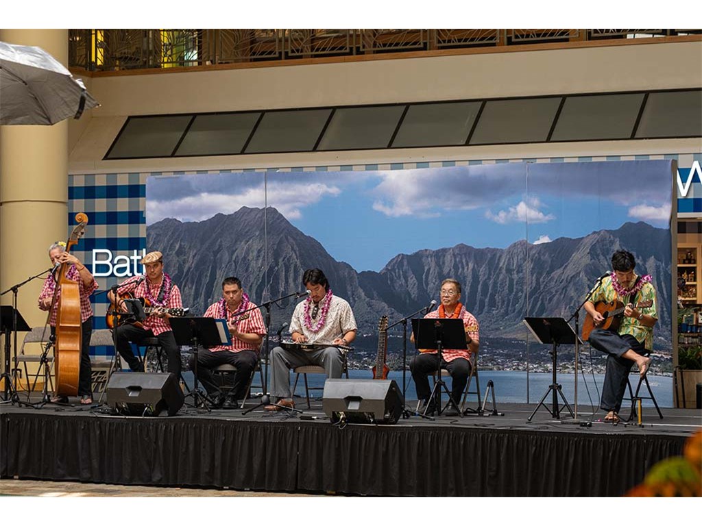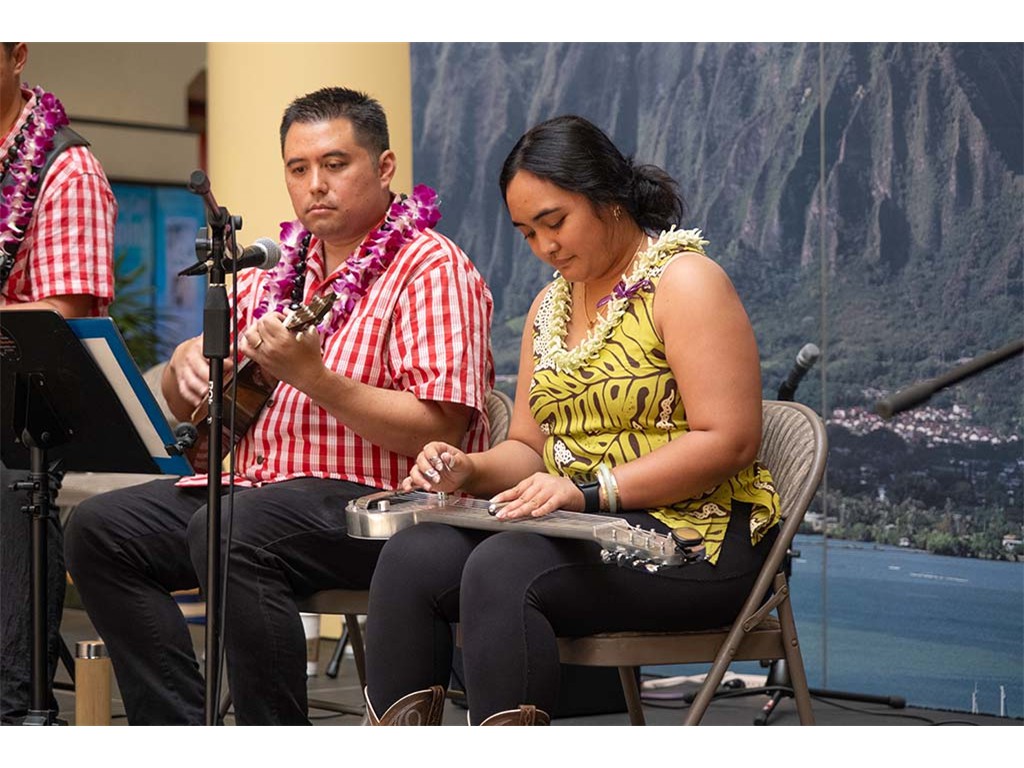 Musicians Calvin Higa, Claude Kutaka, Tom Okimoto, Augie Erlandiz, Miles Yoshioka, Clayton Izu, Mele Alaka’i Naomi Ahana, Steve Kawachi, Myra O’Brien, and Yvonne Bangay.