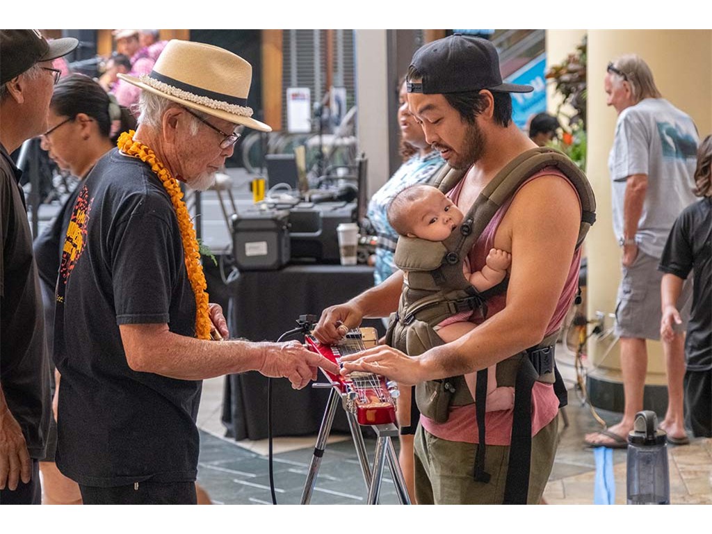Claude Kutaka provided hands-on opportunities for festival guests to learn more abouit the Hawaiian steel guitar.