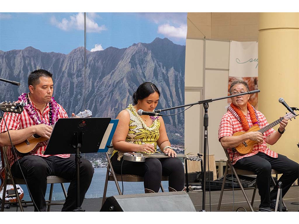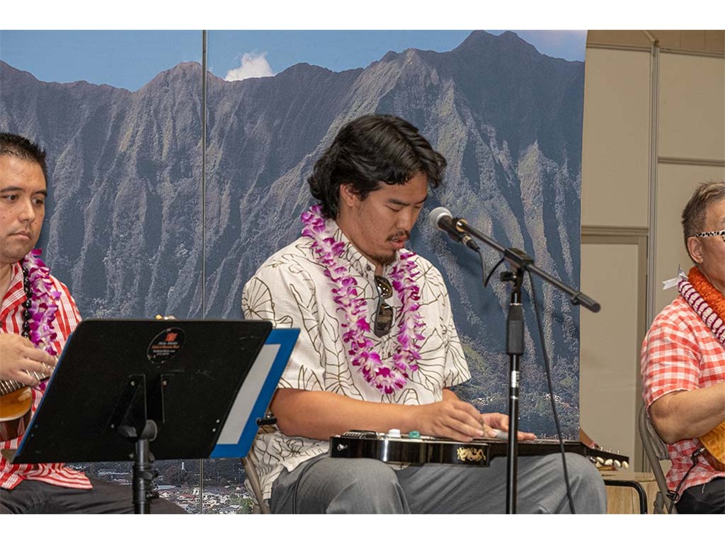 Featured steel guitarist Devin Nakahara with Kaipo Lindsey and Alan Akaka.