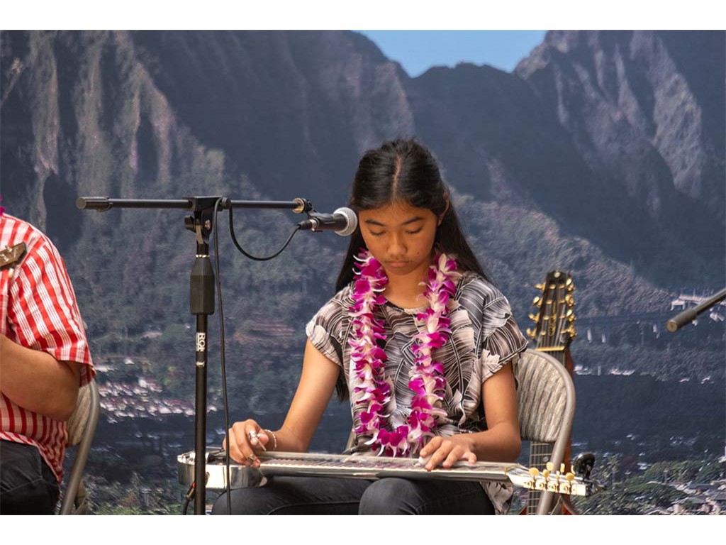 Steel guitar duet by Makamae and Isabella with Kaipo Lindsey and Alan Akaka.