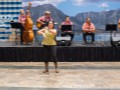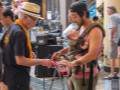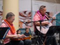 Claude Kutaka observing another festival guest on the steel guitar.