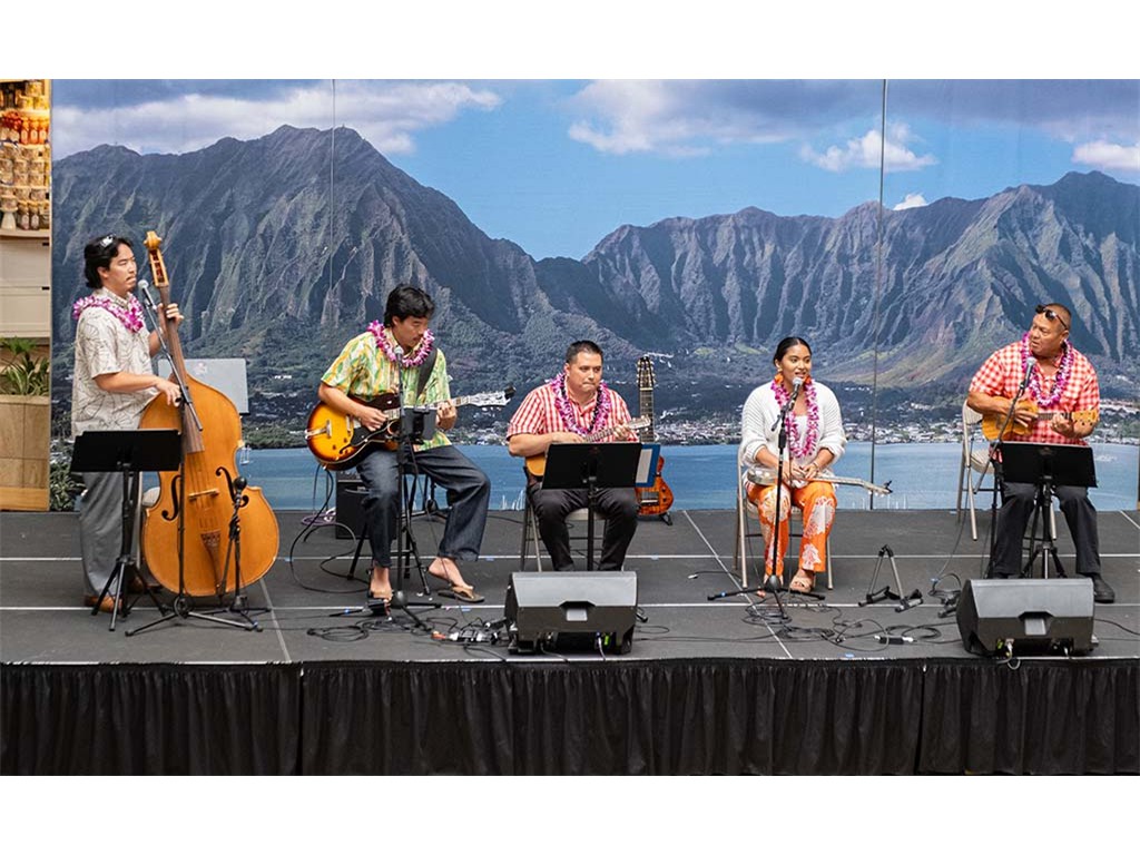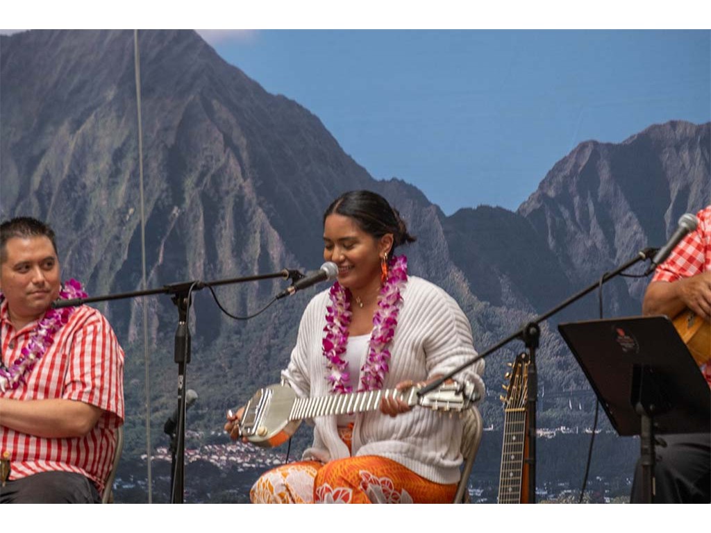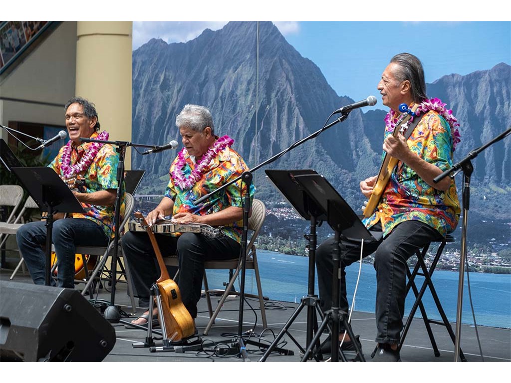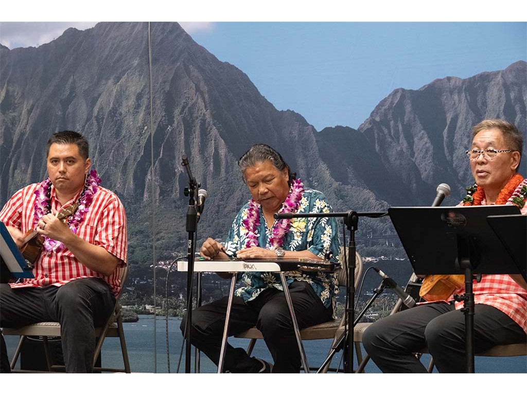Featured steel guitarist Mālie Lyman with Kaipo Lindsey and Kaipo Asing. Darrell Aquino is also in the picture.