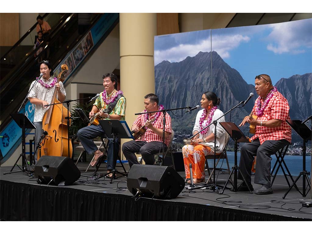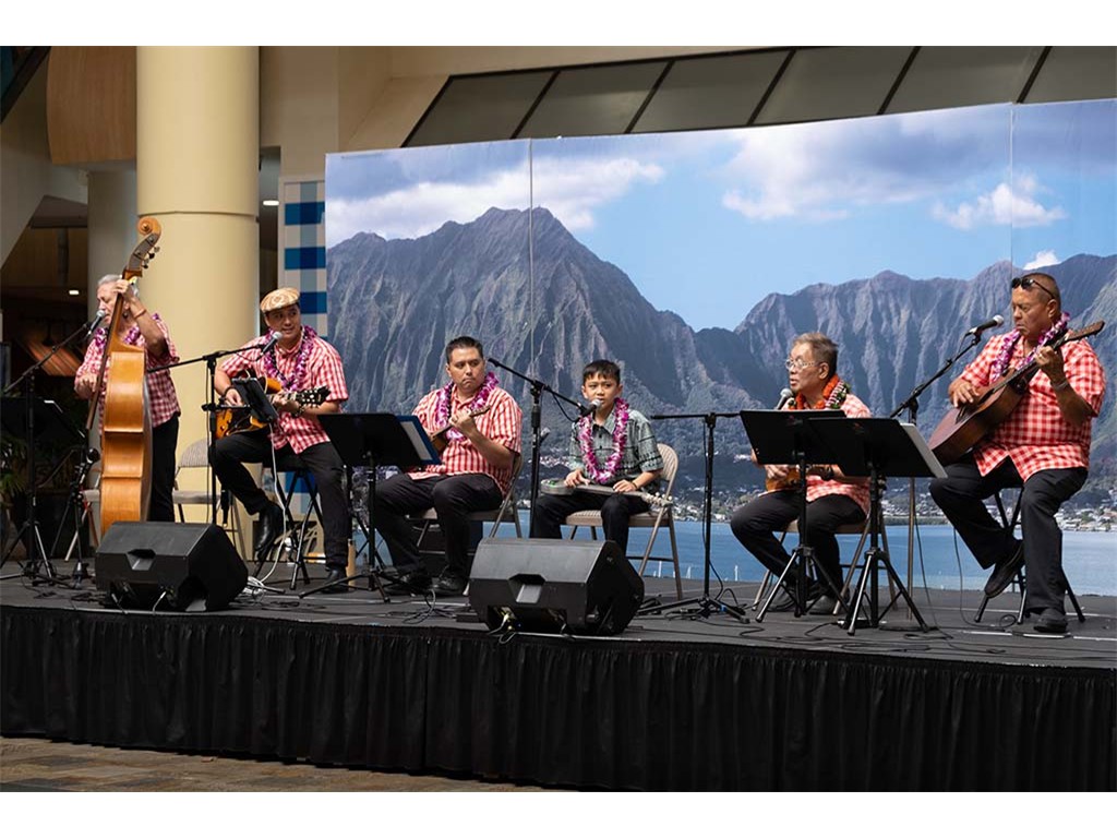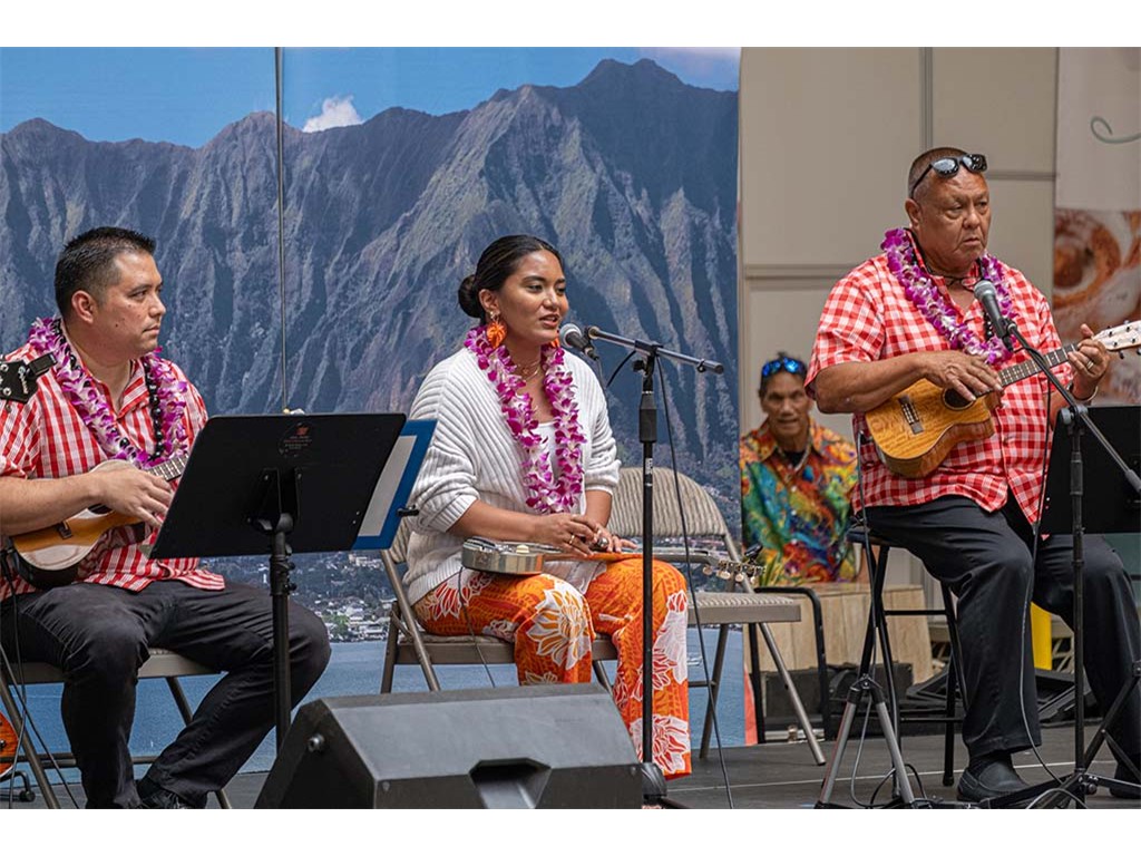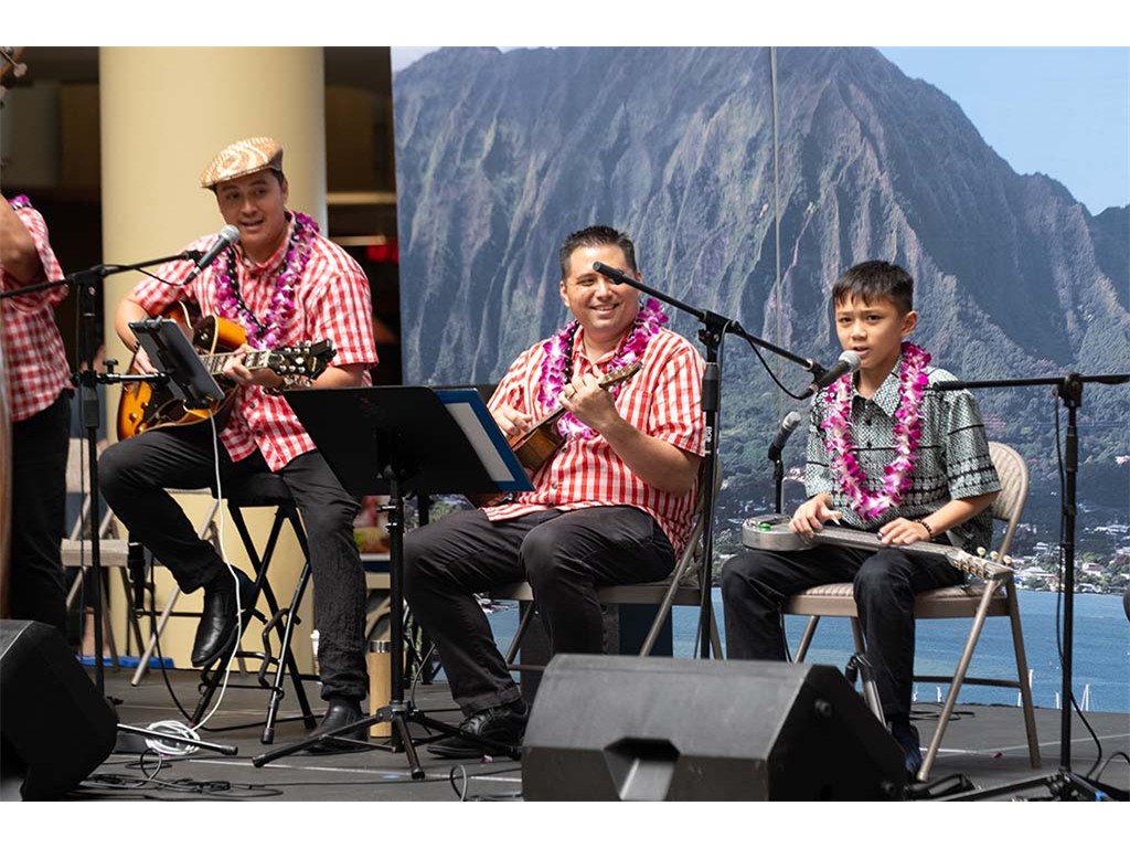Featured steel guitarist Mālie Lyman with Kaipo Lindsey and Kaipo Asing. Darrell Aquino is also in the picture.
