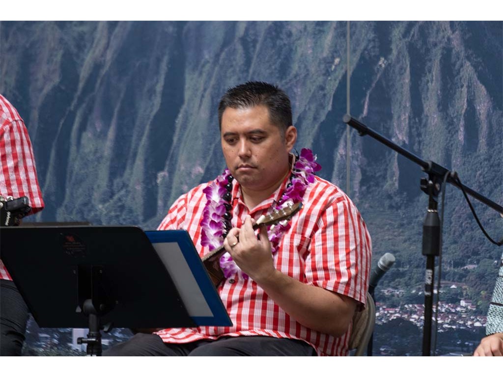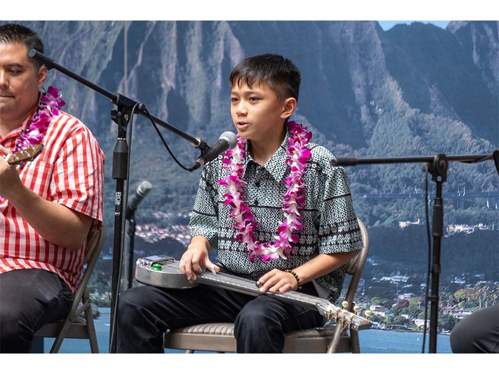Claude Kutaka provided hands-on opportunities for festival guests to learn more abouit the Hawaiian steel guitar.