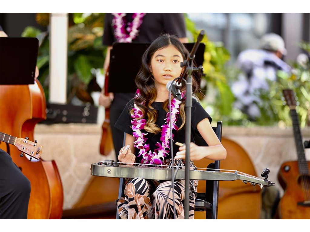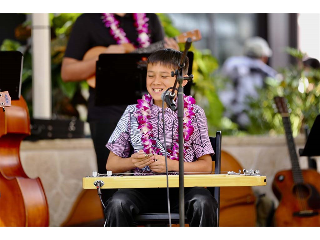 The 2024 Hawaiian Steel Guitar Festival at Ka Makana Ali‘i featured steel guitarists Alan Akaka, Steve Cheney, Bobby Ingano, Mālie Lyman, and Greg Sardinha and Po‘okela (Zach Castro and Kata Maduli.) Also featured were Community Group Na Kūpuna O Ko‘olau and Ke Kula Mele Hawaiāi NextGen steel guitarists Isaac Woodward, Hi‘ipoi Lindsay, Thang Nguyen, Enosa Lyman, Ever Ta‘ala, Tai Misailidis, Makamae Lyu-Napoleon, and Isabella Bertelmann.