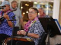 Helene Woodward and Steve Cheney, with other backup musicians in the background.