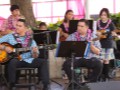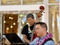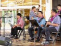 NextGen steel guitarist Thang Nguyen with David Woodward and Kaipo Lindsey. Alan Akaka, Steve Kawachi, and Ethan Speyer are in the background.,