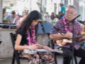 Backup musicians Helene Woodward and Kaipo Lindsey.